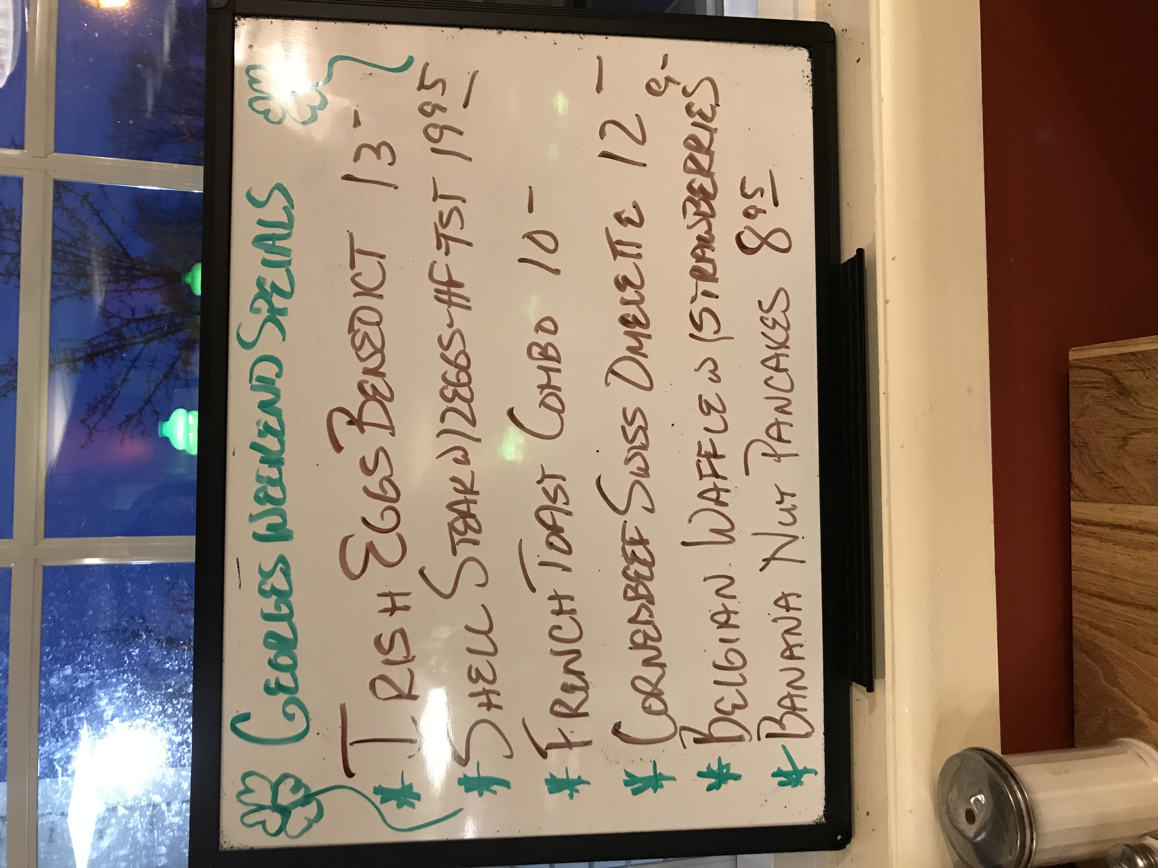 Weekend Specials for Georges Place Happy St. Patrick’s Day! We do have Cornedbeef and Cabbage ! Have a safe one!